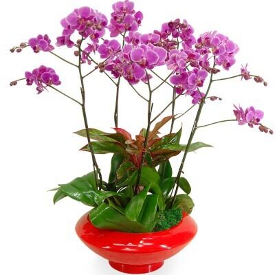 鮮やかなパープルの花びらが印象的なミニサイズの胡蝶蘭。