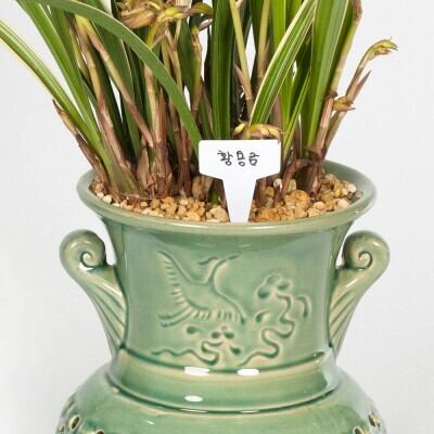 葉の幅が広く丈はやや低めで、整った姿と柔らかな曲線が気品を感じさせる逸品。